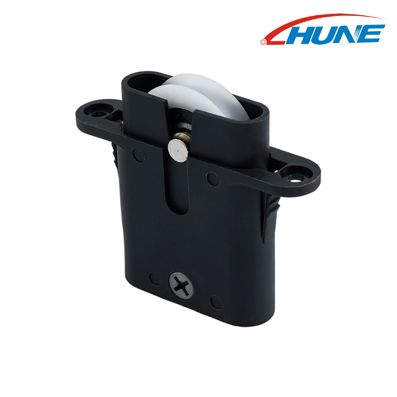 Pribor za namještaj za hardver crni plastično kućište podesivi kotač podesivi kotač valjak je pametno i pouzdano rješenje za glatka i tiha klizna vrata garderobe. Dizajniran s izdržljivim crnim plastičnim kućištem i visokokvalitetnim najlonskim kotačem, ovaj valjak nudi otpornost na habanje, stabilnost i rad s malim bukom.